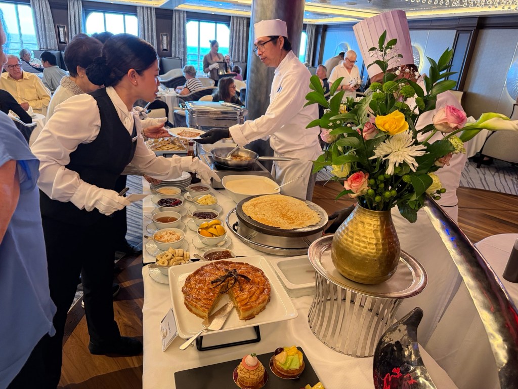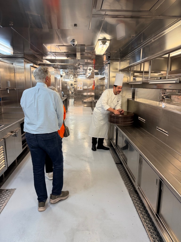 Big hat, executive chefdescribing the operation of pastry and prep areaall induction cooking