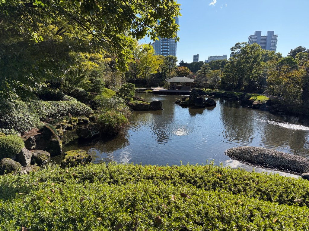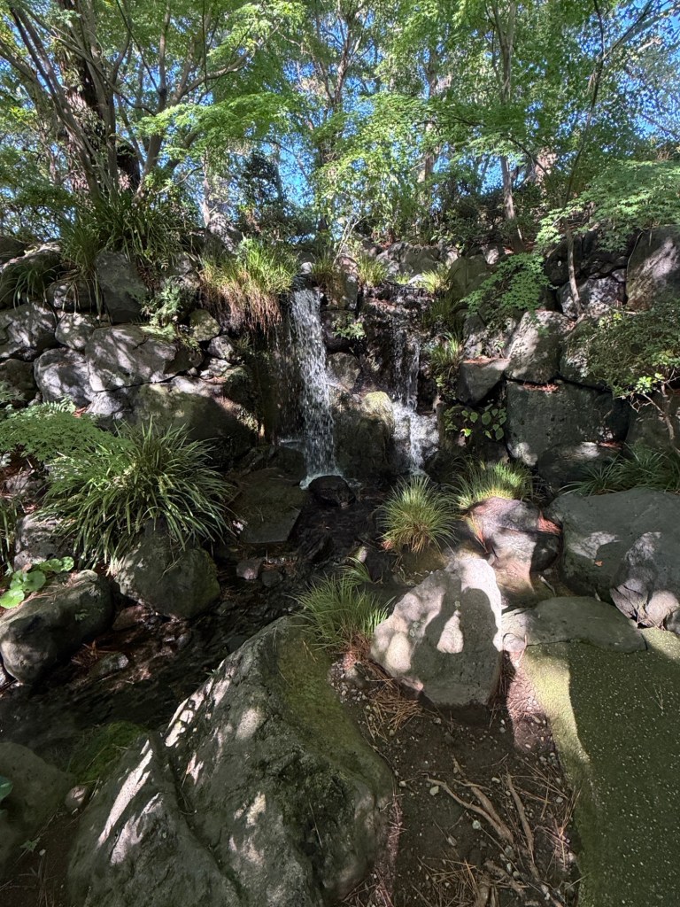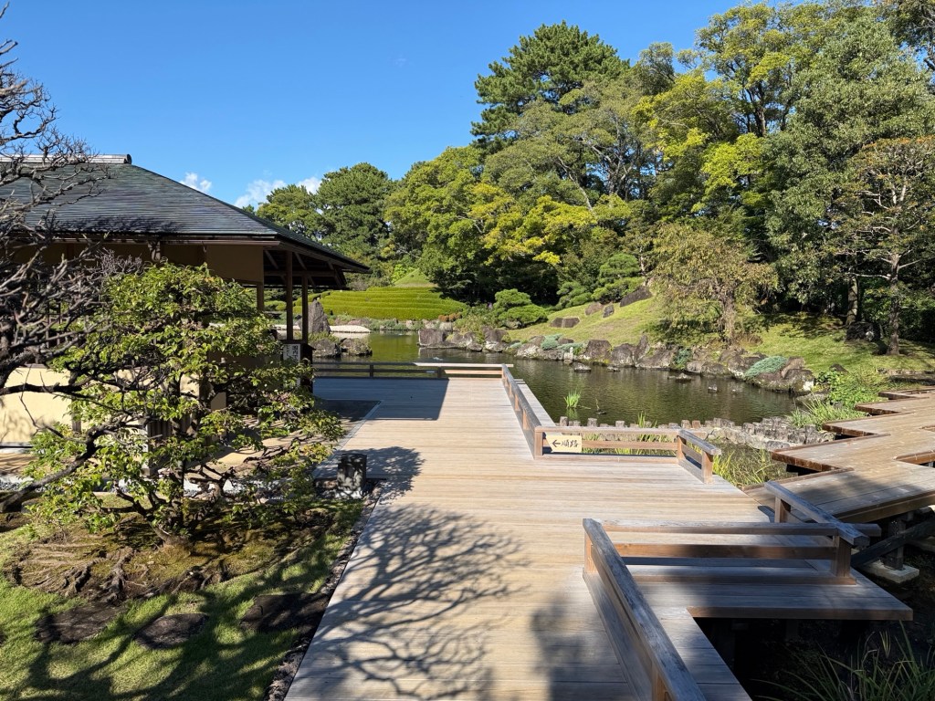 The layout which is not obvious from the pictures mirrors, the bay and Mount Fuji area, where the boat is docked, and the mound is a representation of Fuji