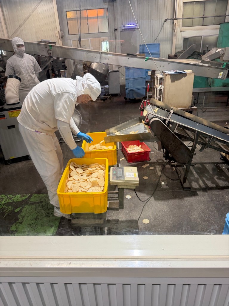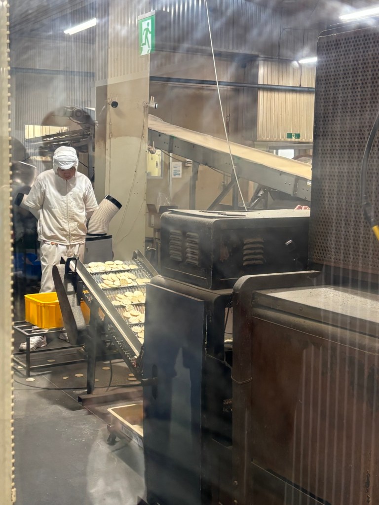 This has to be one of the oddest tours I’ve ever been on. All you can see is occasional picture of obsolete machinery and rice crackers moving along a conveyor. Narrow hallway echoes a lot so it was hard to hear the guide.