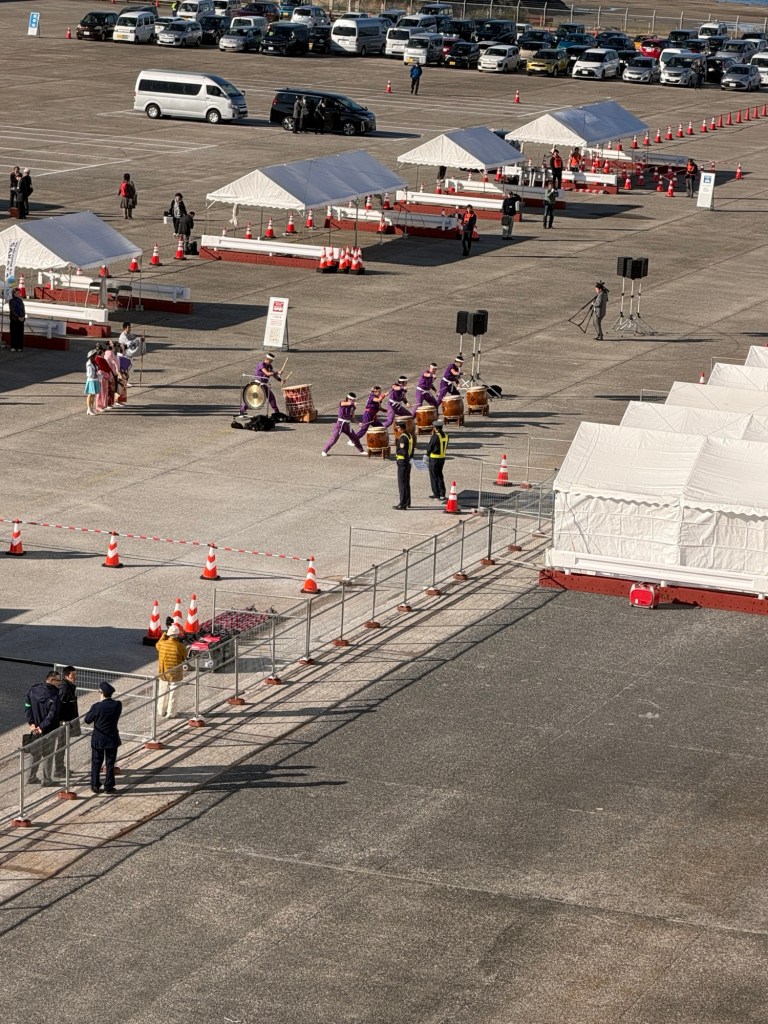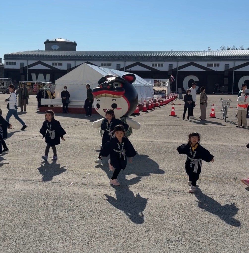 Welcoming drummers around 8amMascot with children dancingMore mascot