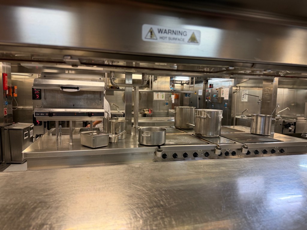 Room remarkably cool due to filtration system did not get hot in there. Executive chef said it does not get hot.