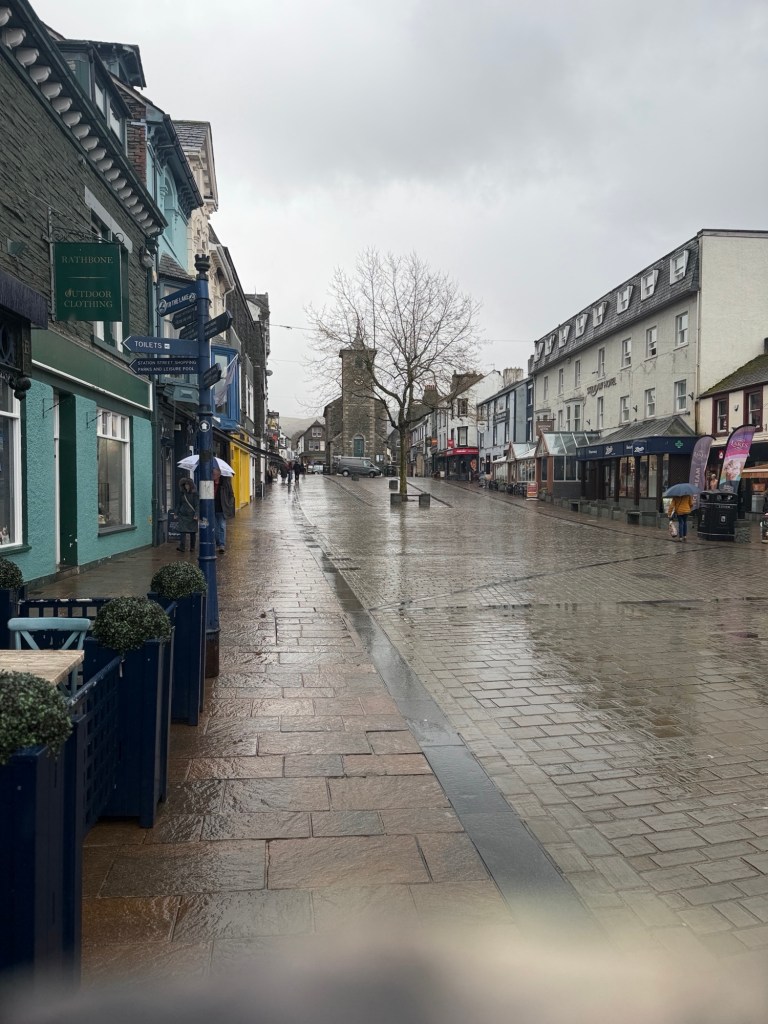 Rain. Derwent Pencil Factory and Museum. Walking to Keswick. Tea cake. Breakfast. Typical downtown
