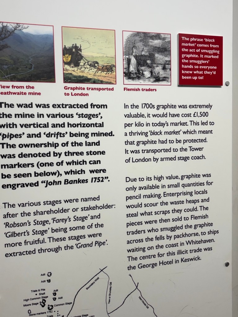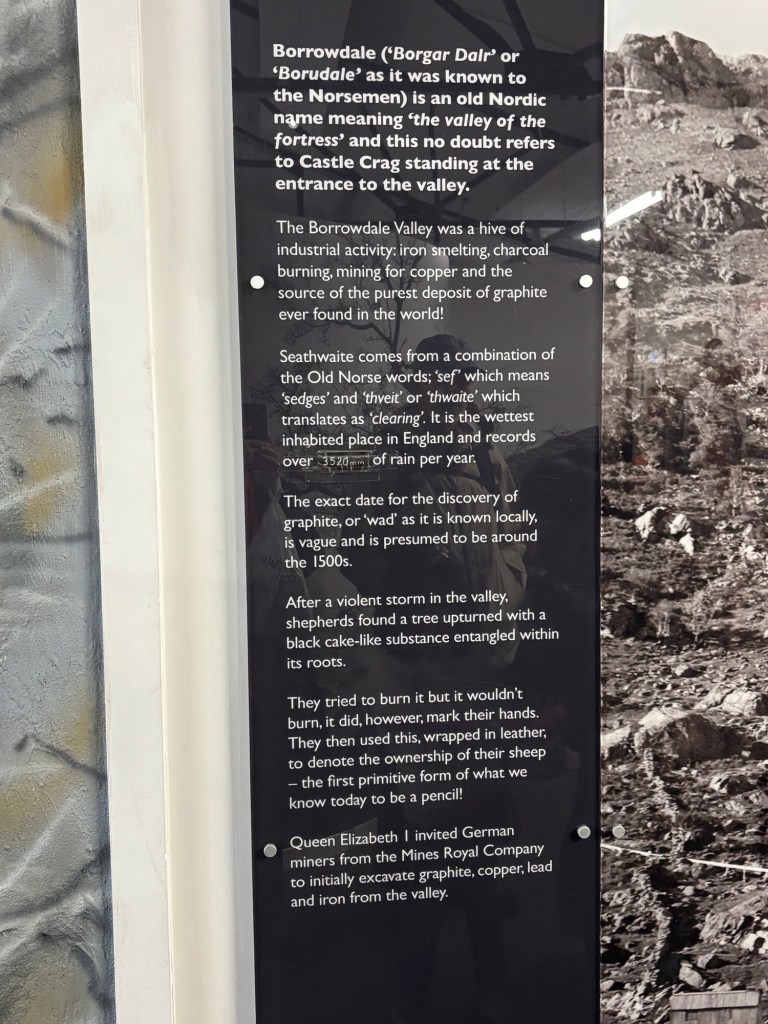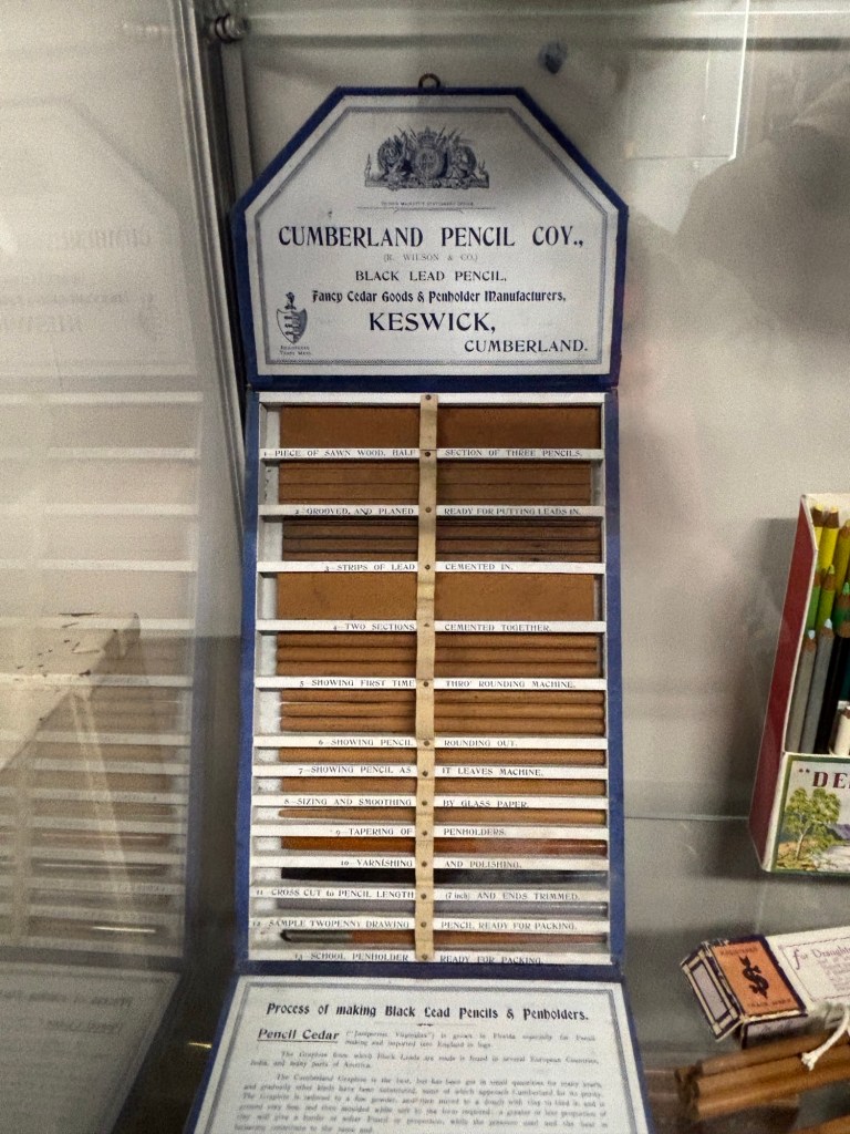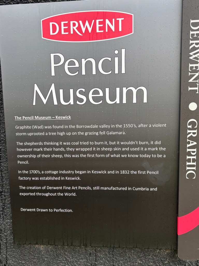 BusyPed path to Keswick. Part of Cumbrian Way. Portinscale -Keswick footpathDerwent Pencil Museum. Pencil Museum. Part of exhibits. More exhibit. More about graphite. More history. Pencil making. See next photo. Big pencil. Store. Not the Geese Formerly Known as Canada. Maybe greylag?