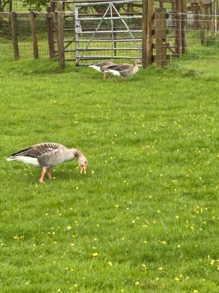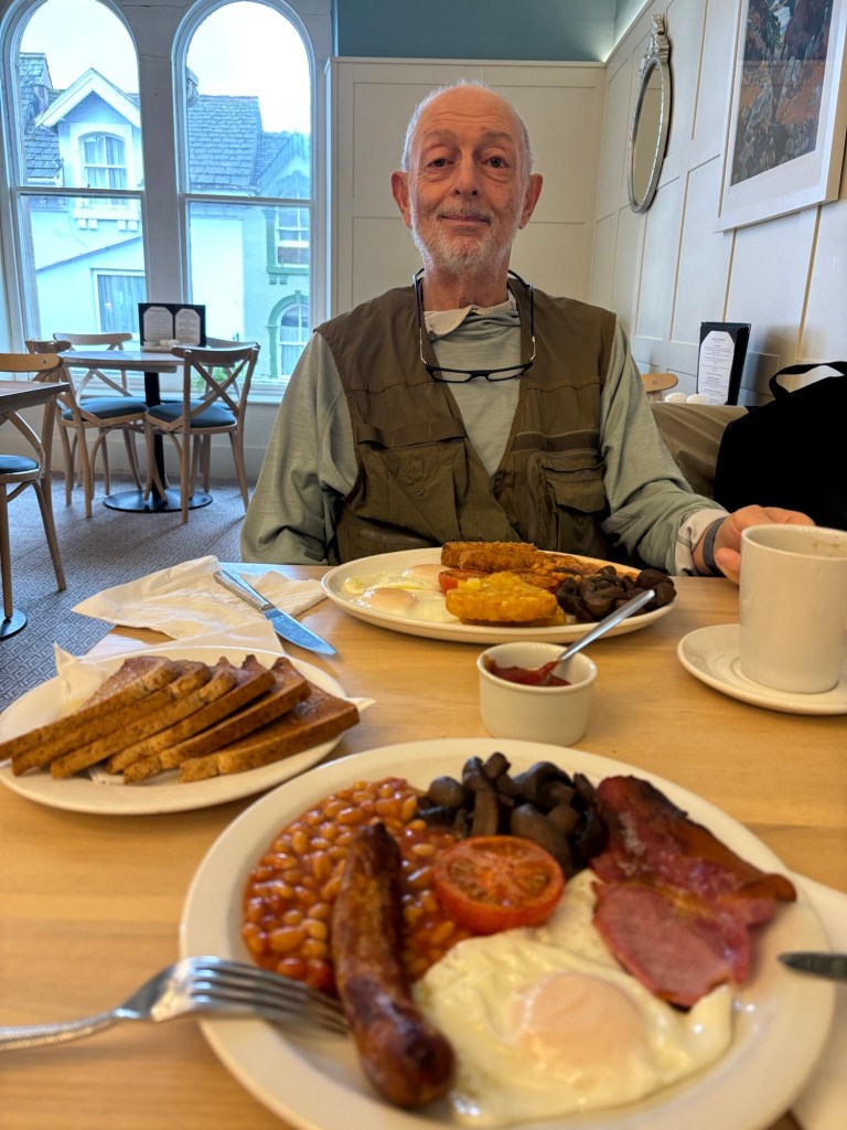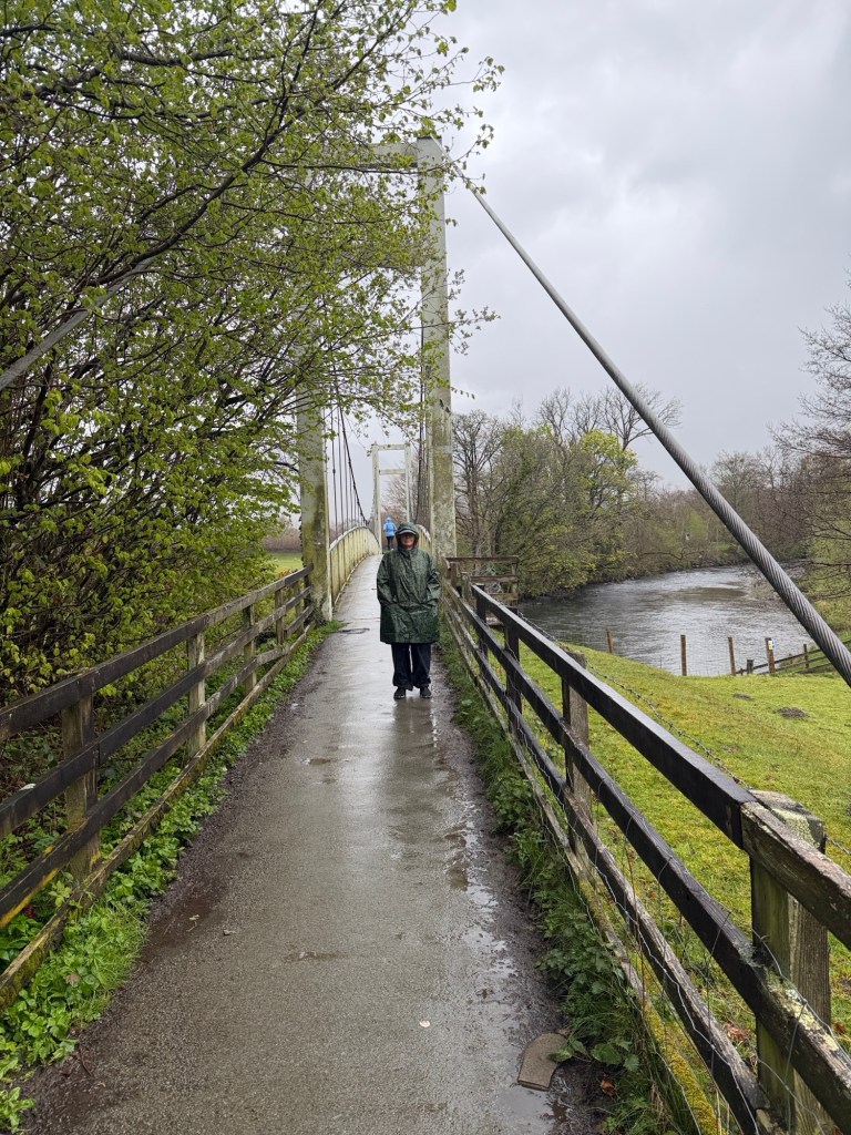 We decided to skip the formal walks today as the rain would be continuous and the mud even more so especially on slippery cliffs. Sharon says “as much as we like them.”