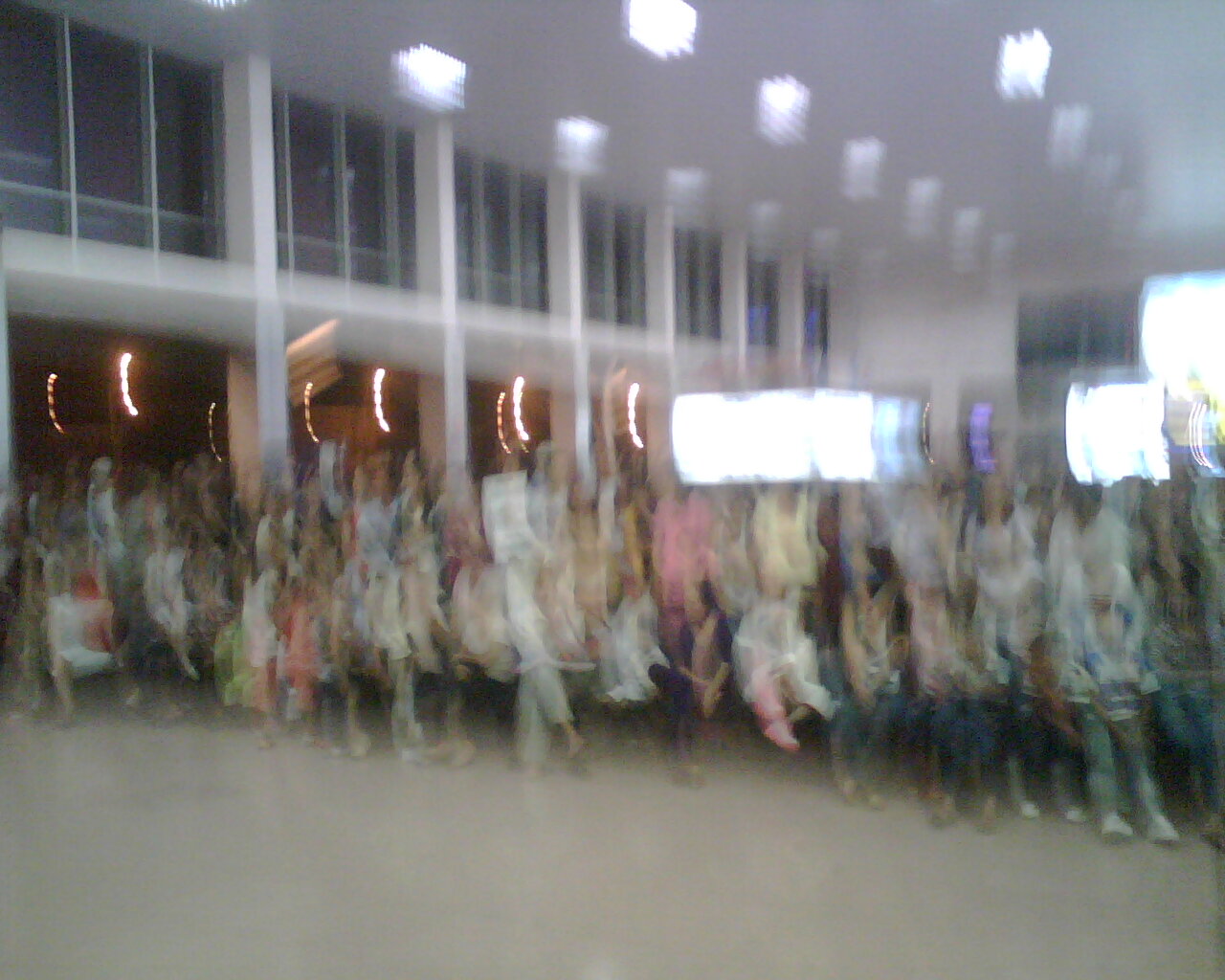 Arrived without incident. Long flight of course. The picture, likely to be terrible, is in the arrivals hall. Tried to get a sense of the number of people and their density.