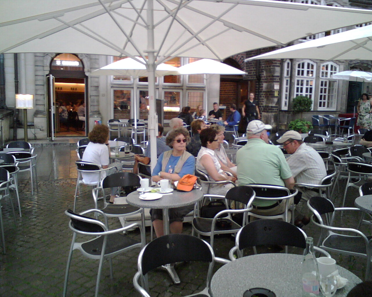 Just missed Bach at the Dom, a bit too late. Coffee in the Markt. Then it rained. Ate during the warm rain with lightening and thunder. Rained more so we orfred coffee.
