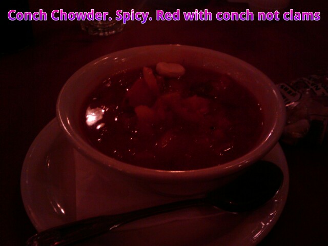 Dinner was perfect. First Conch (pronounced conk) soup. A Gastropod,