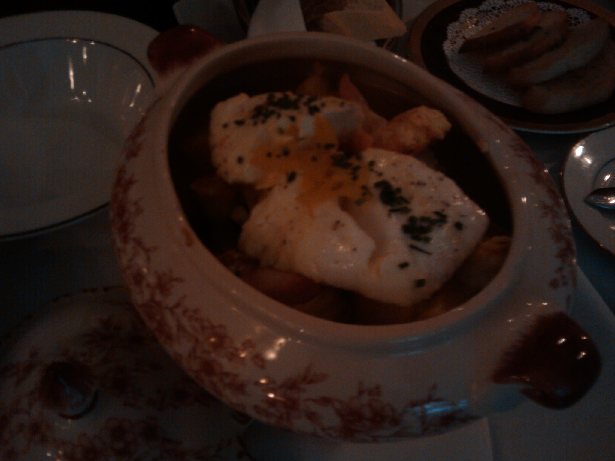 Dinner: Bouillabisse for dinner. Classic french restaurant. Garlic lemon