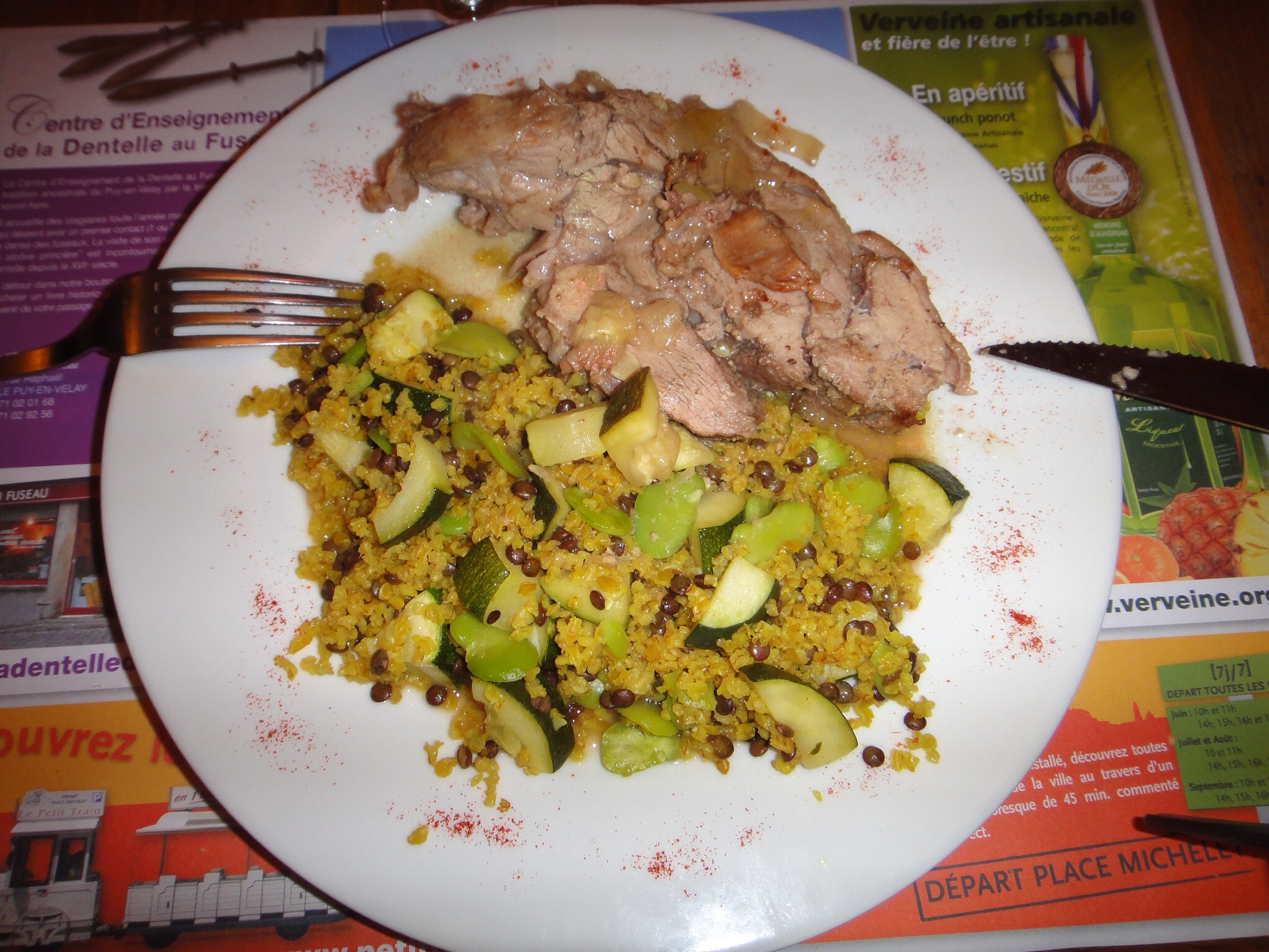 The innkeeper speaks several languages but used an interesting idiom " je parle anglais comme une vache español" I speak english like a spanish cow. Loved it!