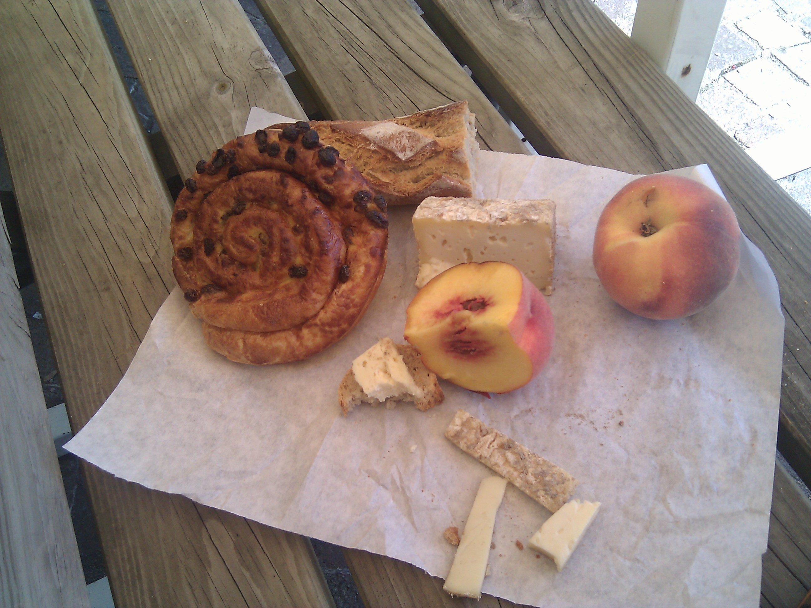Atisian cheese, bread, pan au raisin, and fruit. In the market I asked the