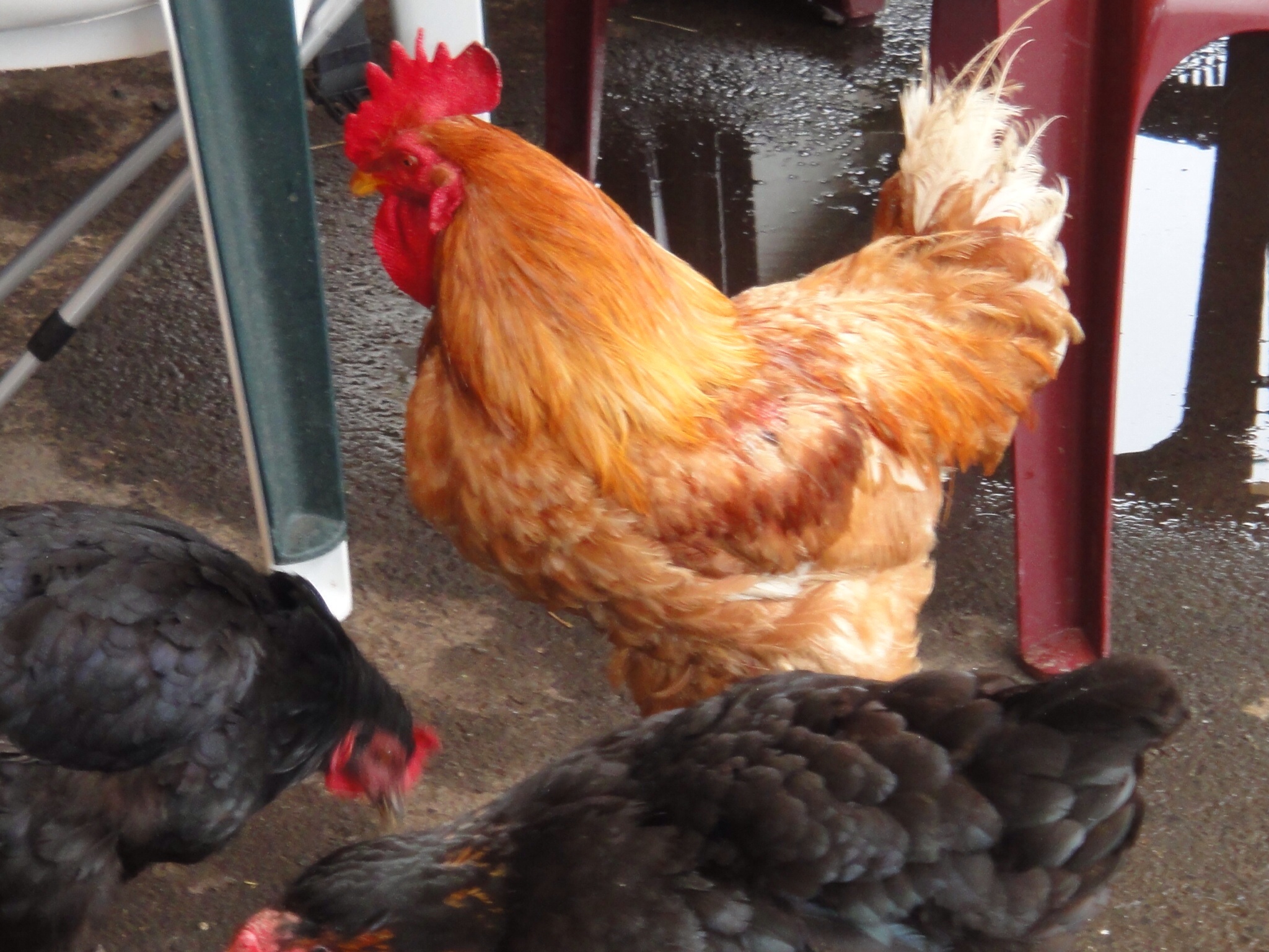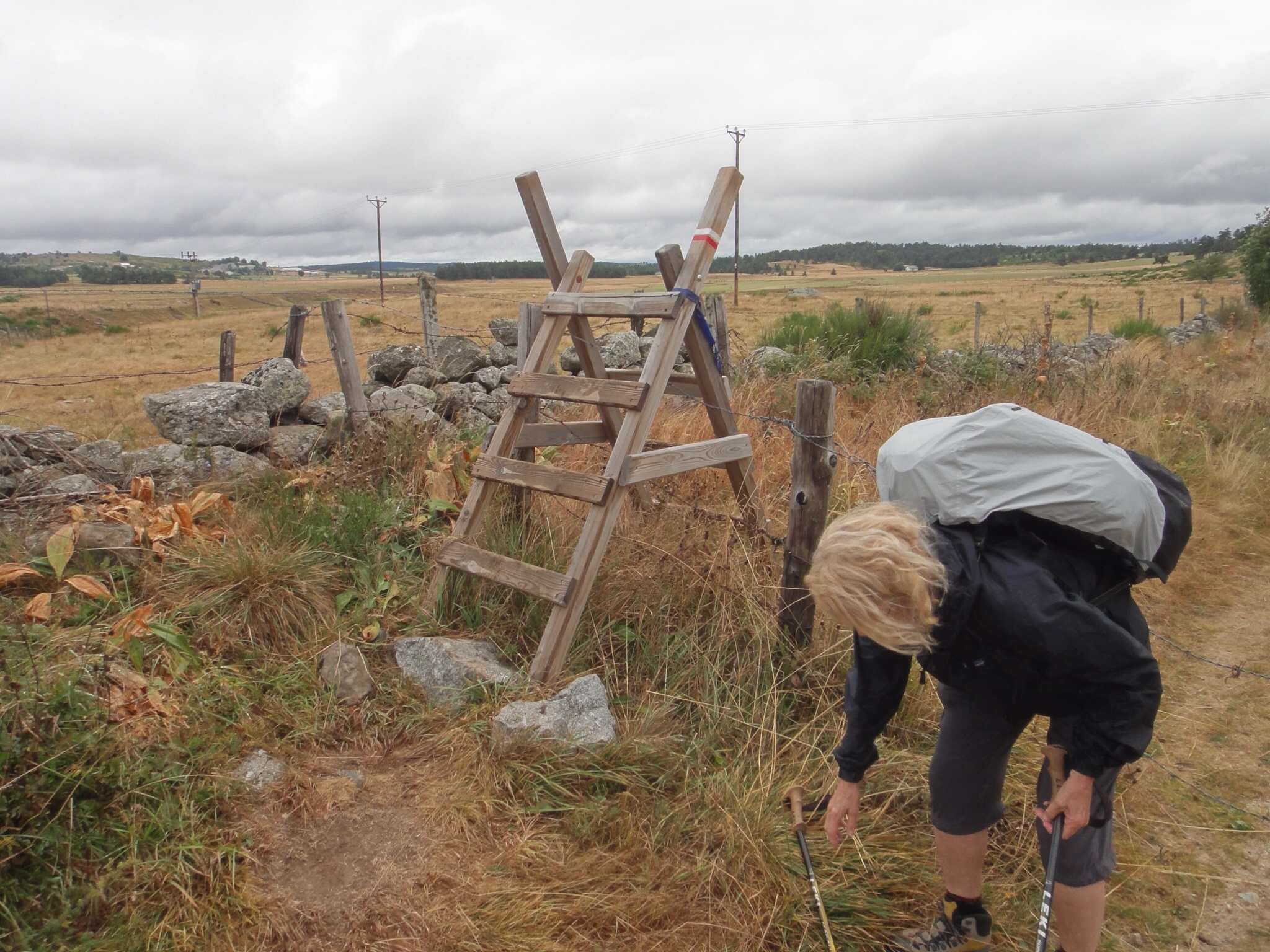 Classic country walks today through cow fields. Luckily dry so no mud or wet cow pats. Cows d'Aubrac are a big breed here and are beautiful. And free range, as are chickens (see photo). Climbed up for several hours then back down a steep andu painful path. Fortunately I ran into Anna of Australia again so we were able to give one another some moral support.