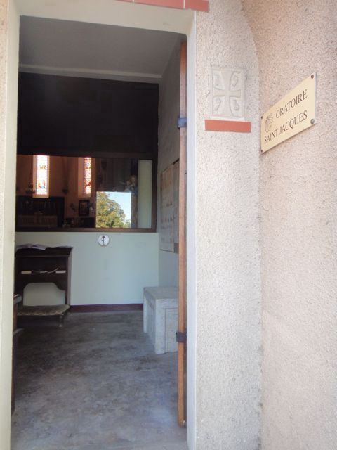 Stopped in Manciet, another small, mostly closed village (one store open). The church there has a special drive-by prayer window (offertory?) for pilgrims! You zip in, can kneel and pray. There is a picture window onto the interior of the church (maybe they don’t want all those muddy hiking boots). There are prayers on the wall (all French, of course) with pilgrim suffering, etc. As good as drive-in coffee in Oregon and Washington.
