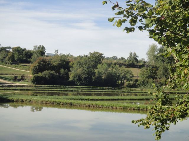 The “uninteresting, flat” walk continued up and down hills of vineyards. Passed an aquaculture farm of multiple ponds (no info on what was in them).
