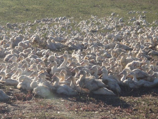 Stopped during schlep to view the first foie gras/duck farm I’ve seen. A guy who had been ahead on the trail for a while, was there also. He mumbled something in French. Since I could not understand his accent I said I didn’t understand, so he mumbled it a few more times. Since I was apparently too stupid to follow, he started to shout (just as fast), repeating his comment. I guess that was supposed to improve my comprehension. Finally he added a gesture which I understood to mean that the wings are cut off the ducks so they cannot escape. Another disgusting poultry industry.