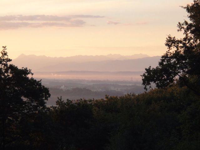 The view! In the USA about $100 would be added to the hotel bill for a view like the one we had. Both with the setting sun and the rising morning sun we had spectacular impressionist views of the Pyrenees. Attempts to capture them included in this post; of course a camera is a poor lens compared to the eye.