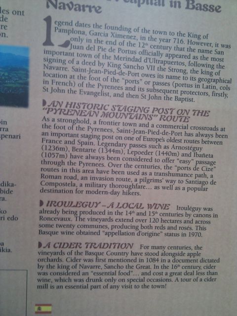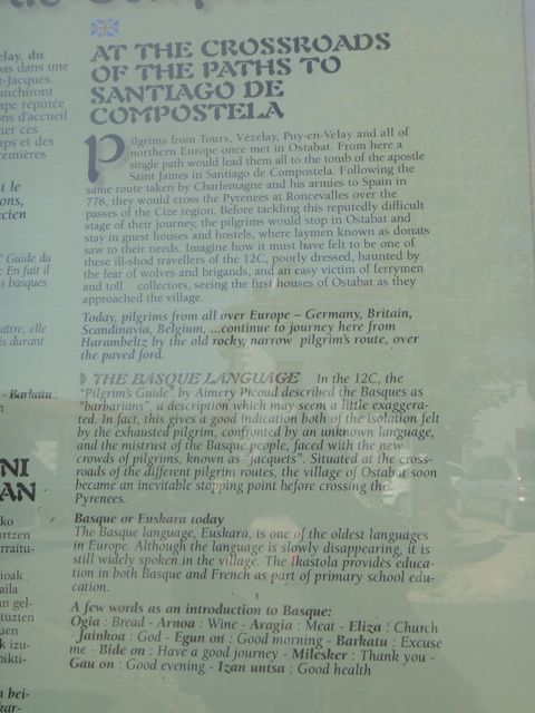 Well, we made it through France to the portal for Spain. Now at the foot of the Pyrenees, with the next forward going day climbing the Roncesvalles pass. Yes, this is the Roncesvalles of the Song of Roland. Maybe we will be able to hear the echo of the horn.