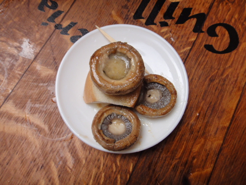 Mushrooms filled with garlic and oil and shrimp, pictured
