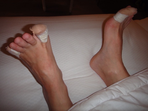 QB is hobbling and in much discomfort and pain. Ice, Ibuprofen, and limping, and maybe the new and high tech silicon ball of foot pads will all be tested. Her toes, her words not mine, are little zombie toes.