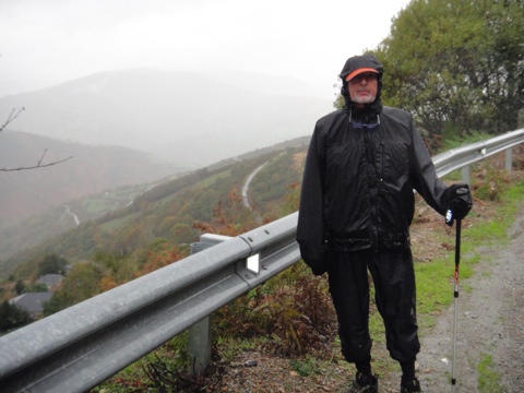 QB soldiering on with a hurt and painful knee; naturally determined to try and finish this walk, especially as we are so close to the end. Less than 150 km to go. Amazingly wet for the past two days, apparently typical of Galicia, which is very green and lush, even in autumn. Jeff saw two large white turkeys en route to Sarria. I missed them entirely and am severely disappointed.