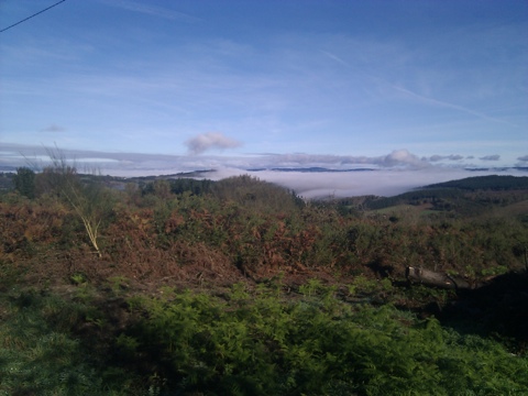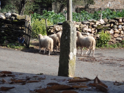 Day starts with a single ESB climb (350 meters), some of it at 7% but most at a bit easier grade. One then reaches the small, and I mean small, town of Ventas de Nar’on. Thirteen people live there. Two extended families. Each run an Auberge for pilgrims. Learn Gallegos in school, play outdoor games and is very family friendly according to the barkeeper at one of the two establishments. She taught Spanish in Granada but moved to Ventas to have her children out of the “big city”, to run a bar and take care of cows. Her English was excellent.