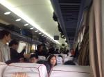 The train is non-stop running a pretty consistent 92 miles per hour. Quiet, very little rocking. Very overcrowded. Each seat filled with maybe 20 people in our car standing for the full five hour plus ride.