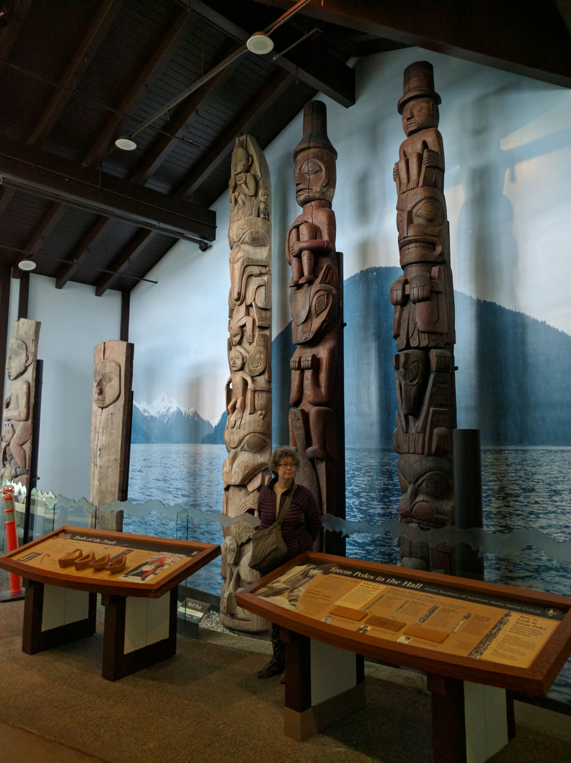 Church,totem poles in sitka national historical park
