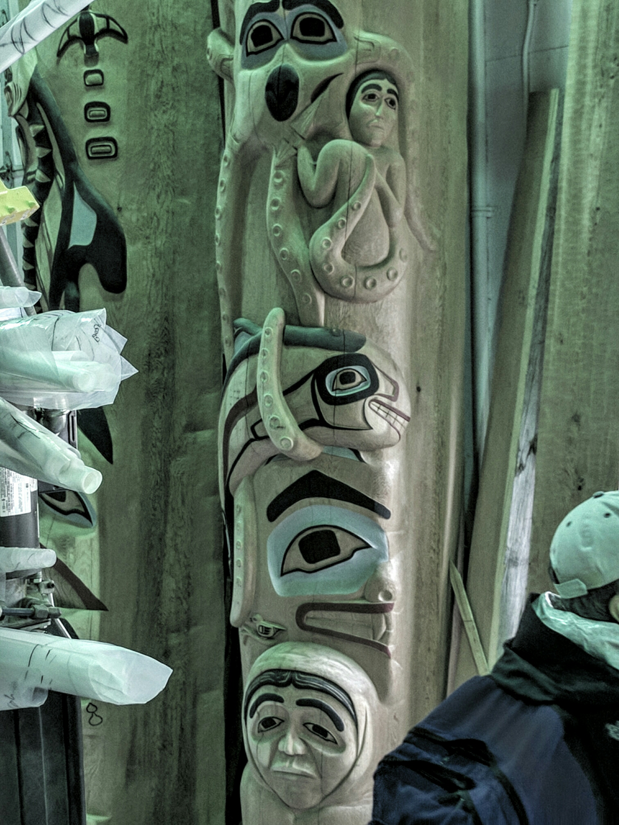 The main town has native cable and pole carvers. The national history park service of glacier nasty has hired several to create a village completed with carvings. A multi year project.