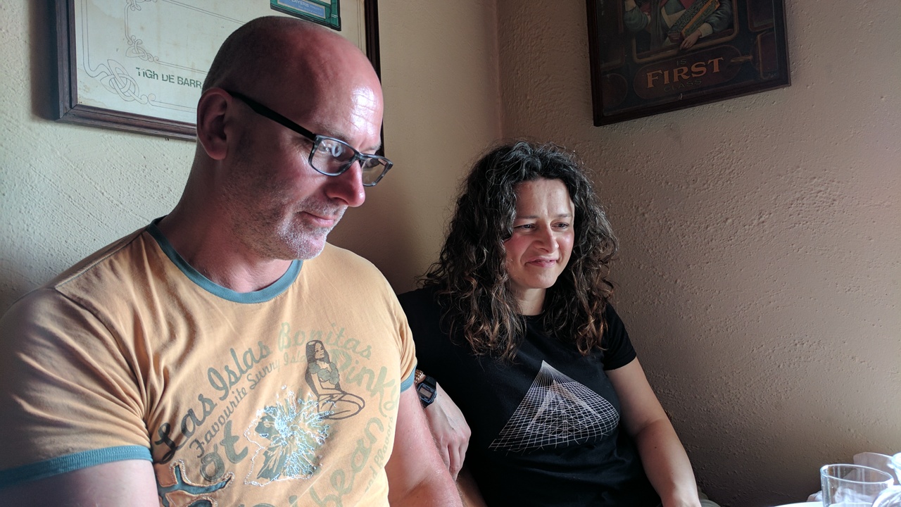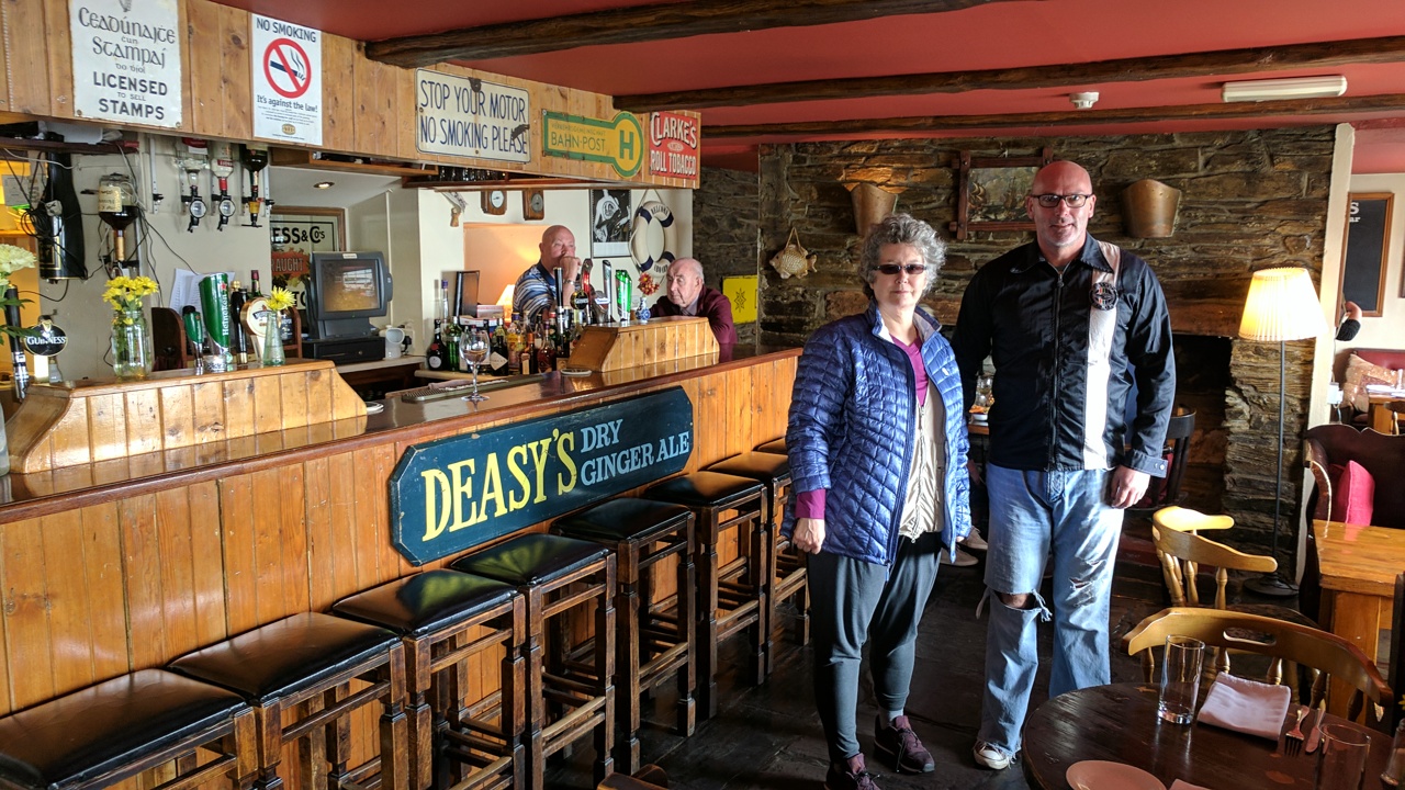 During the walk through Kinsale we stopped for a Guinness, quite more mellow here. The fireplace was using non-smokey coal brought in from Poland. Eco reasons.