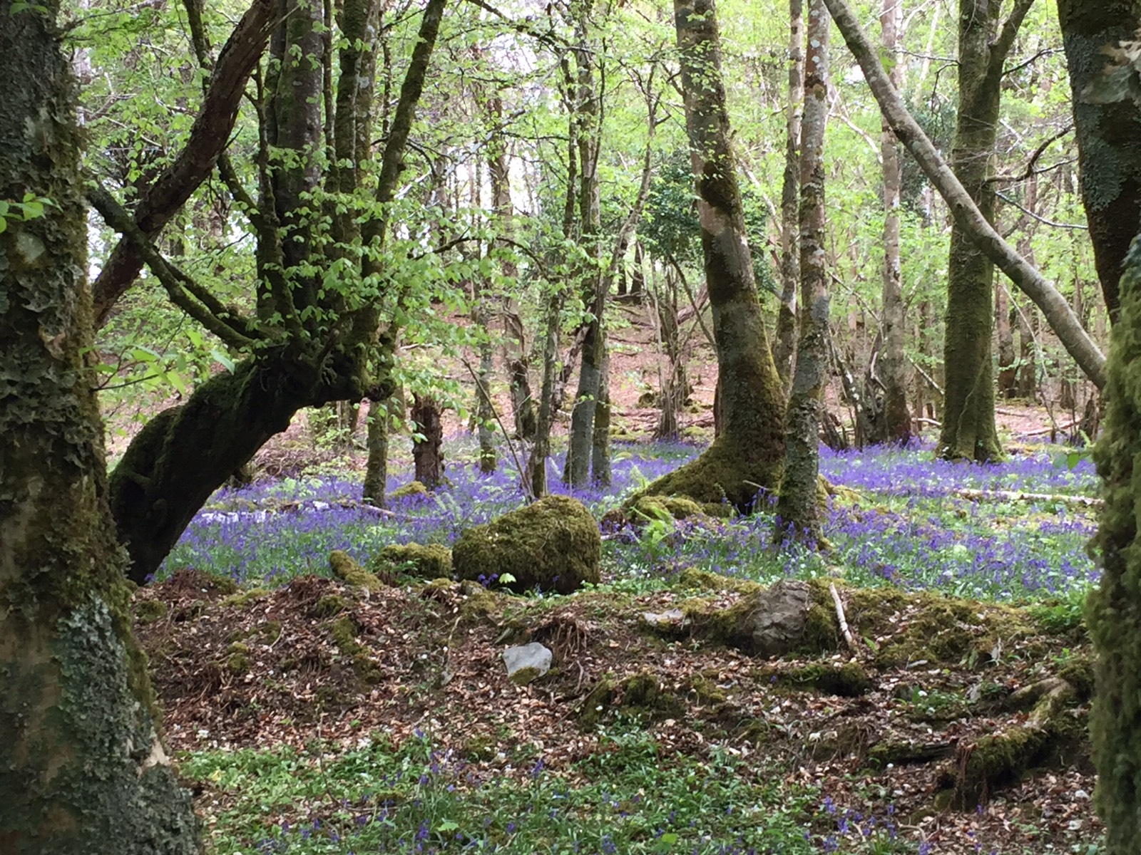 The national Park here is quite large and scenic. Water, old trees, threatening skies, mountains, lake, bluebell woods in this season. Protected deer, both red and Sika.