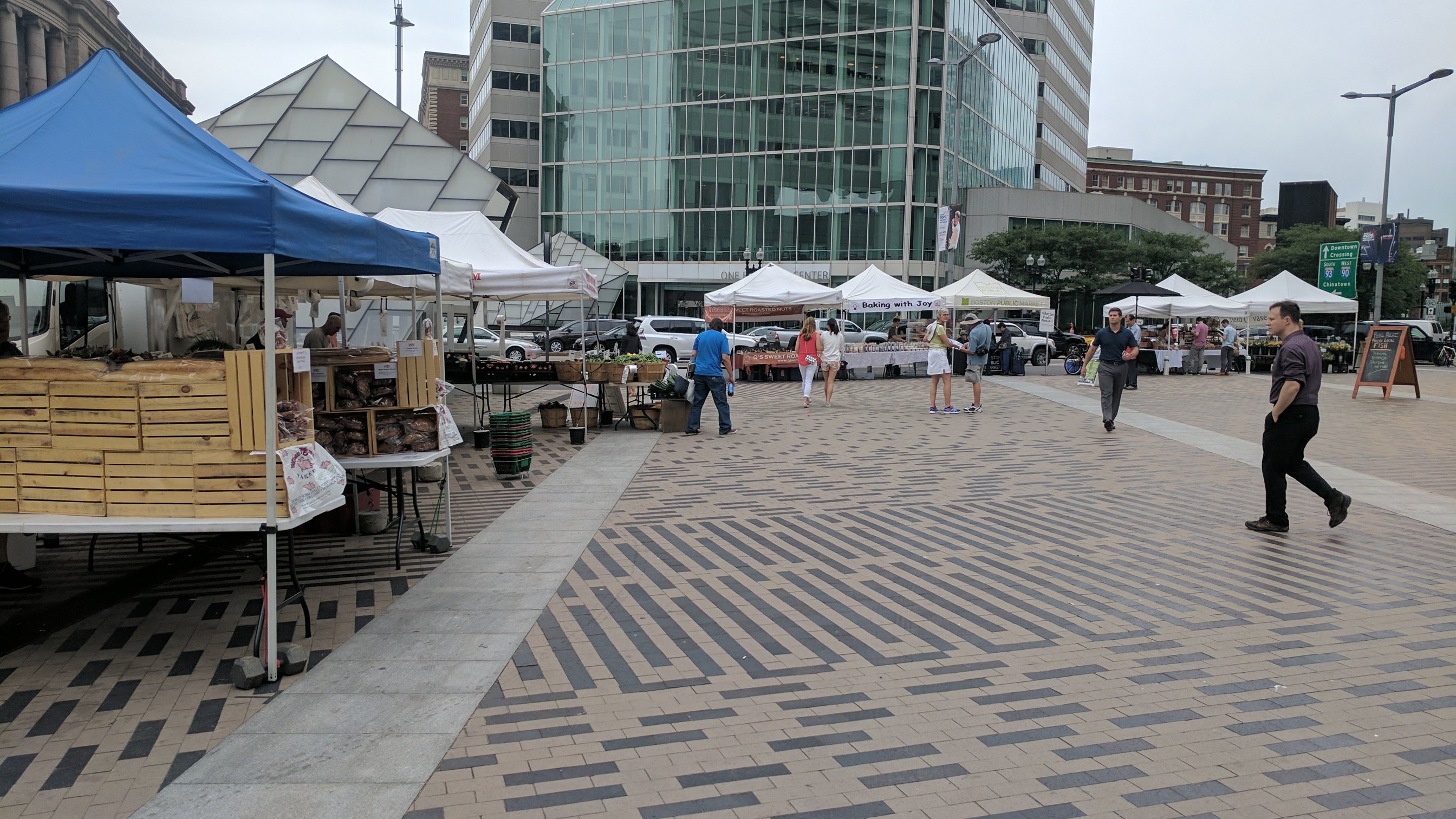 Used to a diet high in fresh fruit we went to a smallish farmers market to get some for breakfast. Got there at 10:00 and eyed the strawberries and raspberries. Not available now: we open at 11. Slacking farmers!