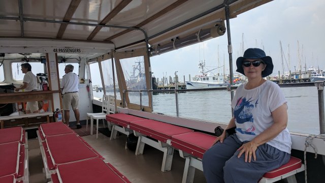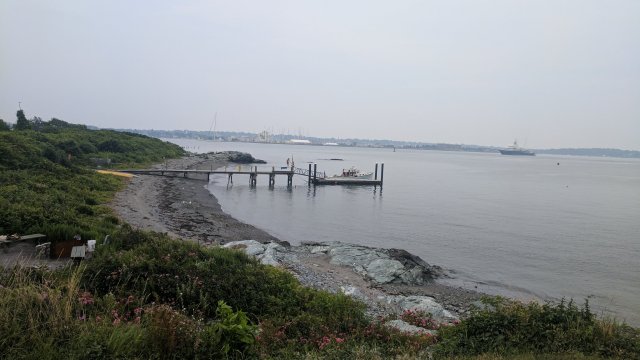 Two balls of string day. Possibly a trifecta. Found a boat in the harbor, hop on and off. First stop for us Rose Island.