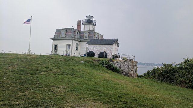 Rose Island. Important lighthouse, bird sanctuary and port in the storm for us. Much of the island off limits until 15 August. Nesting season. QB took some good gull pics, see Flickr.