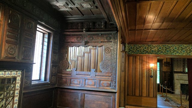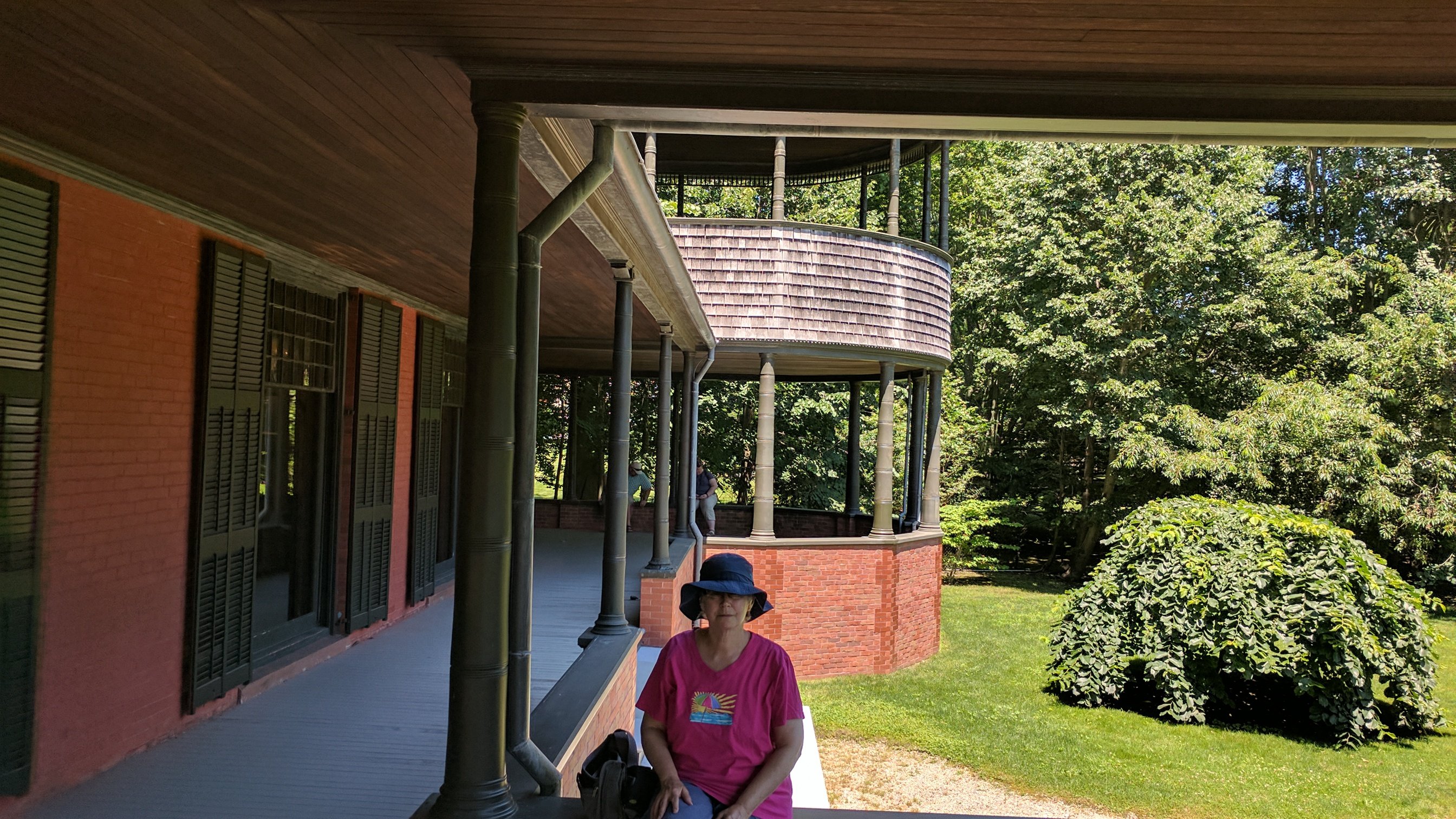 American shingle style, Stanford White, brick down stairs shingles upstairs, bamboo posts.