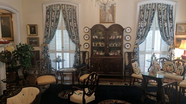 Exterior is Italianate style, or so the tour guide said. Lived in until the 1950s it has been enlarged.