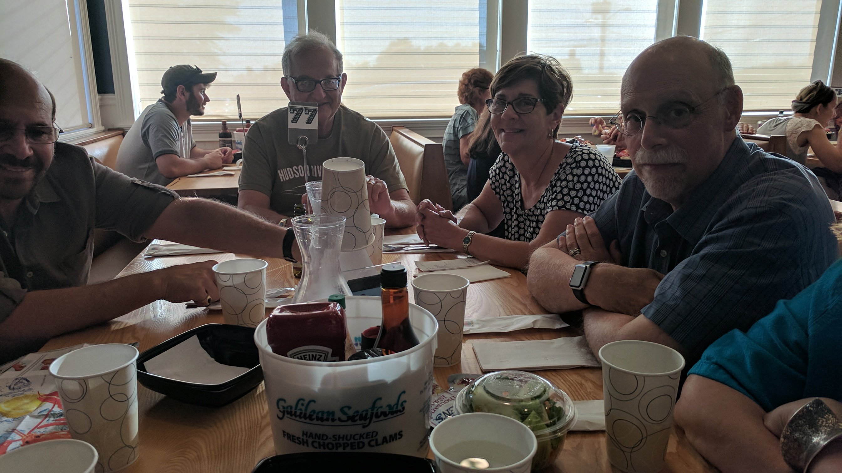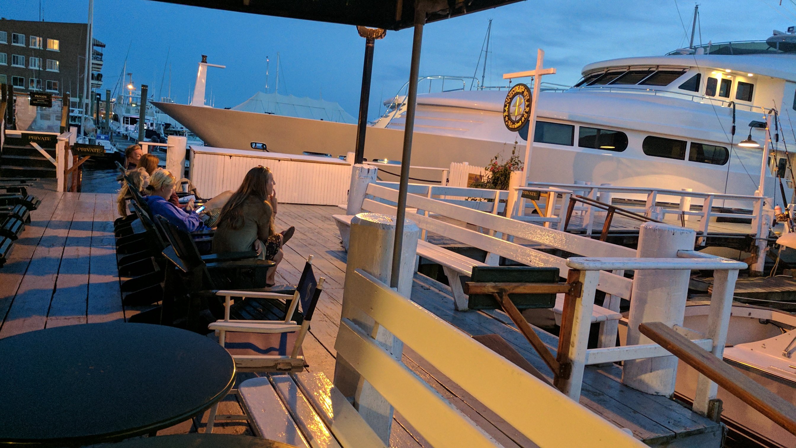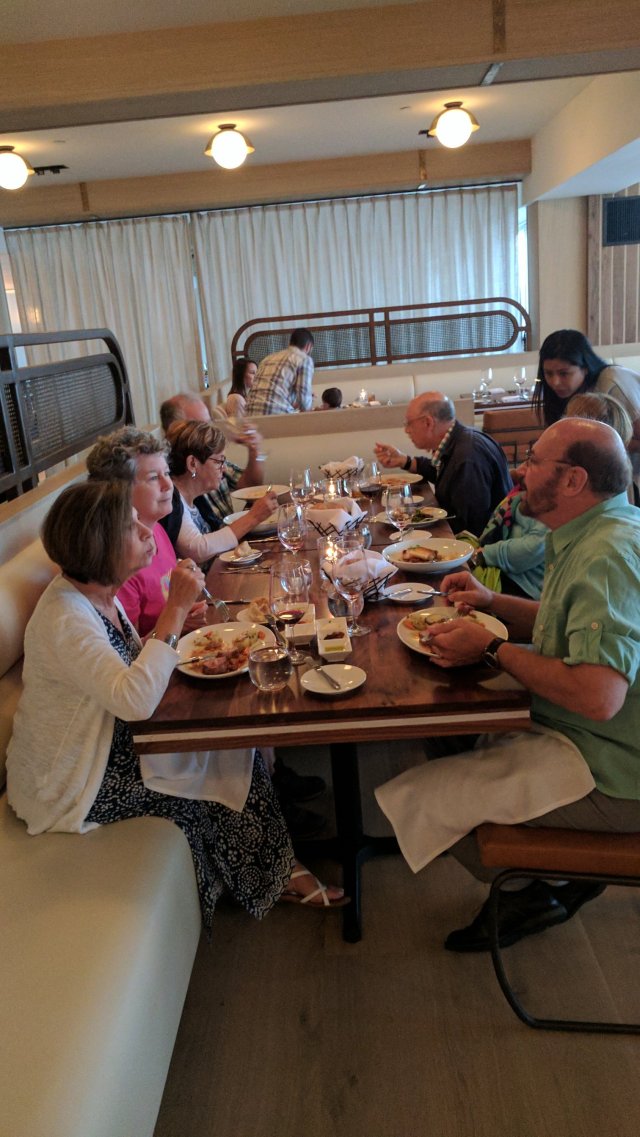 Arrivals interspersed with eating, walking, and dinner at Anthony’s, our go to place for lobster and seafood. No raw bar, that was last evening.