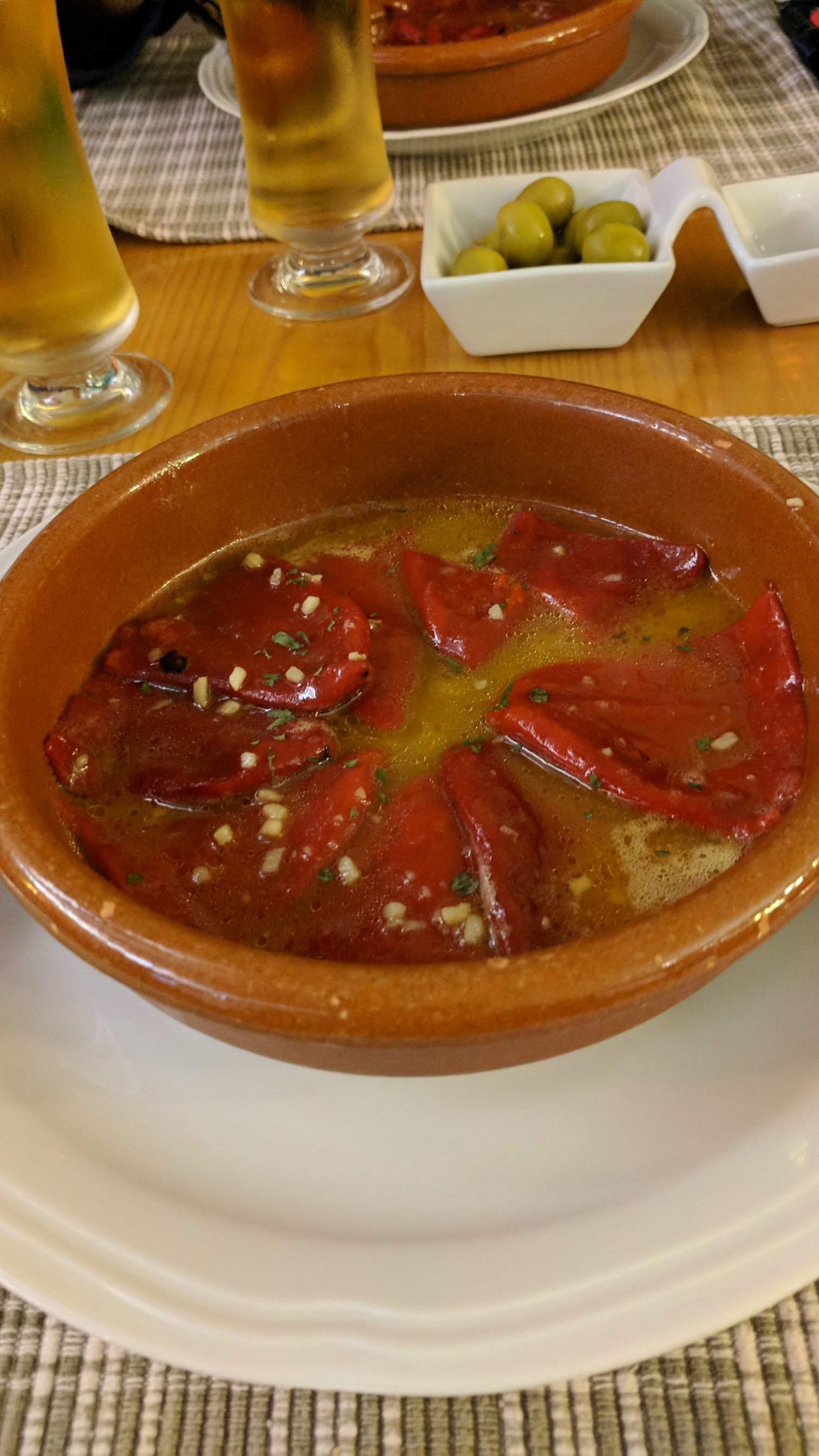 Red peppers in oil garlic, lemon, white wine. Second, the drink, mostly digestif, Patxaran aka Pacharán.