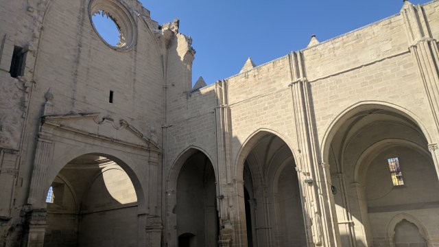 Viana is a hilltop walled City (bastide) of a certain age. Only parts are left, as is only part of a large church, now a ruin, adjacent to the wall.