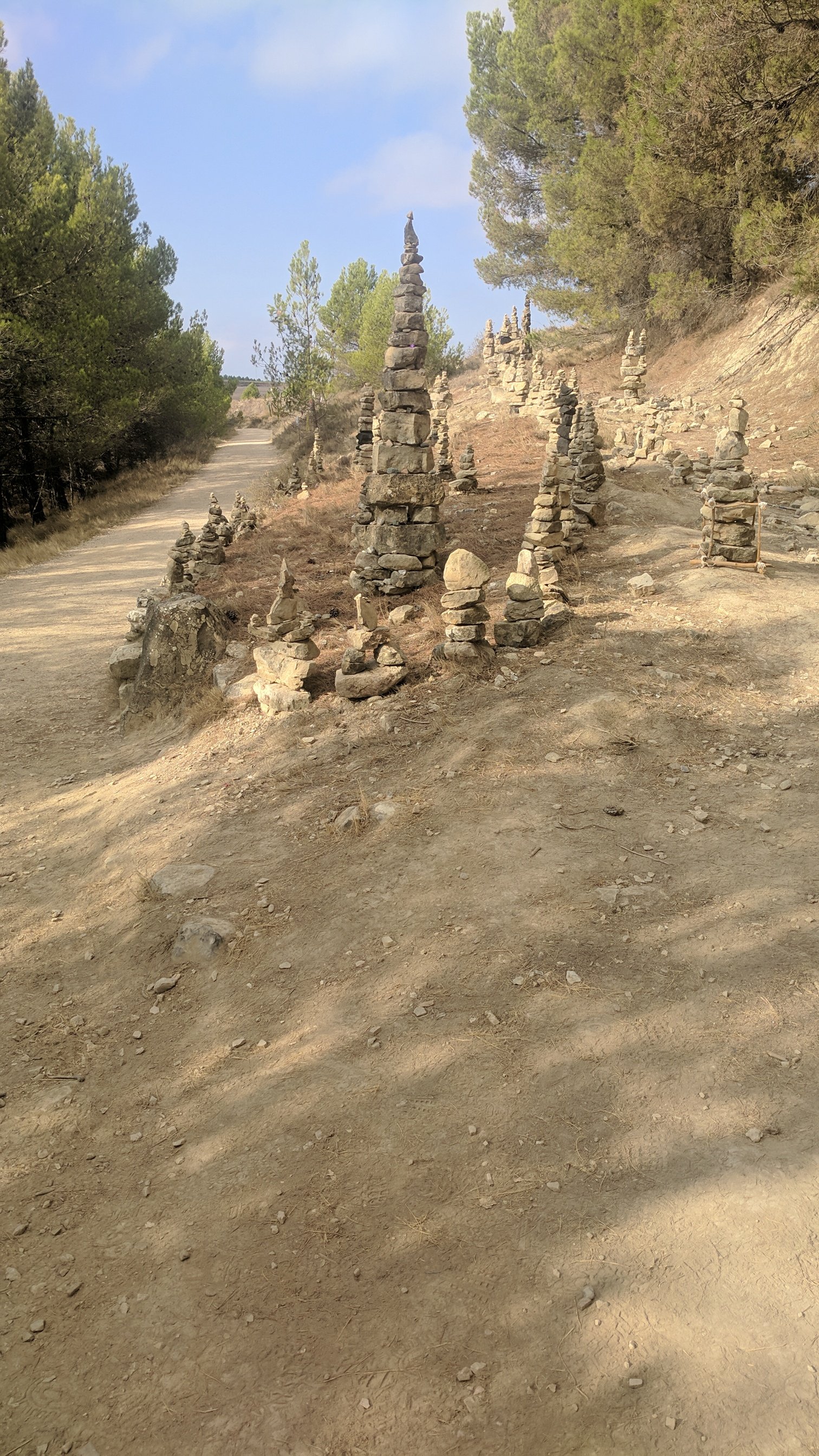 Another of the self made rest stops offering drinks and food and asking for donations. This one contained a nice collection of hitos, the stacked bricks that mark the road (also called miles – Román miles).