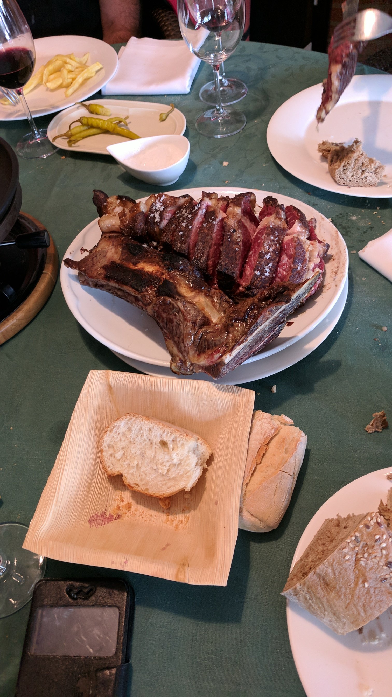 Spanish friendliness. We stopped for a snack at a 2 forked RB restaurant. While we were eating out food the table next to us was served the above. Naturally I had to go over and take a picture and discuss it with them. Beef.
