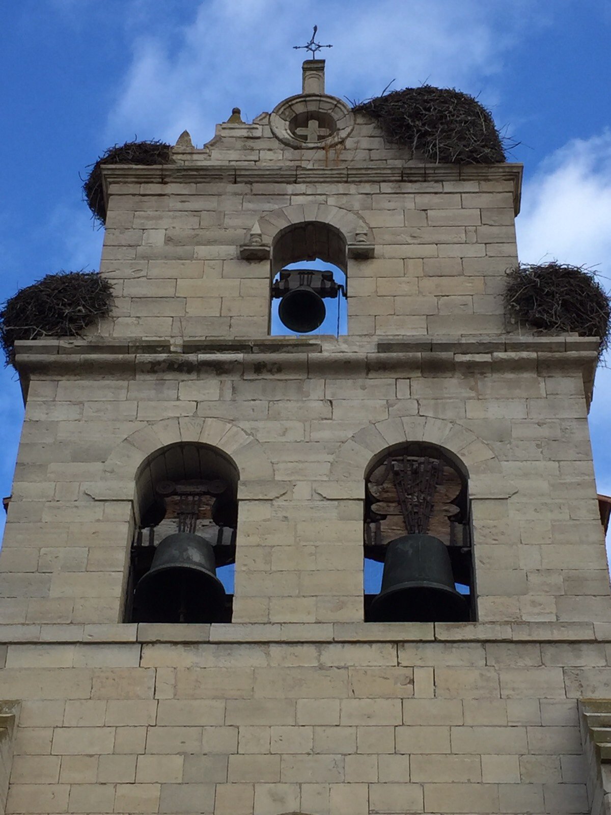 It is quite common to see stork nests on tops of churches. Here, in Belerado, there are four clustered together. Unusal.