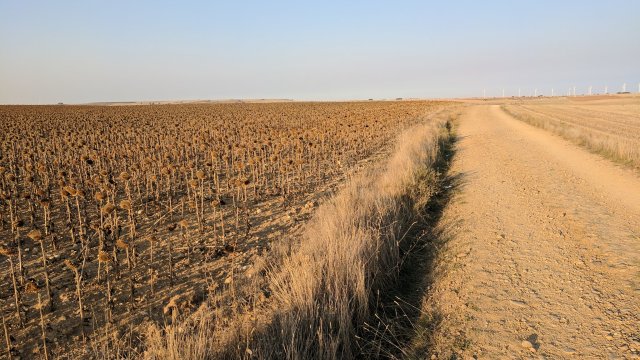 As expected the landscape is barren though we did see a field of dried out sunflowers, above.