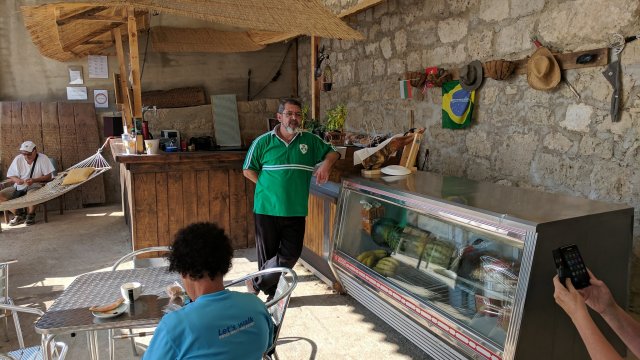Certainly the latter. Someone who definitely belongs in the hospitality business. Gave us (and later two Norwegian woman we invited into the area) watermelon slices. Just because he had them.