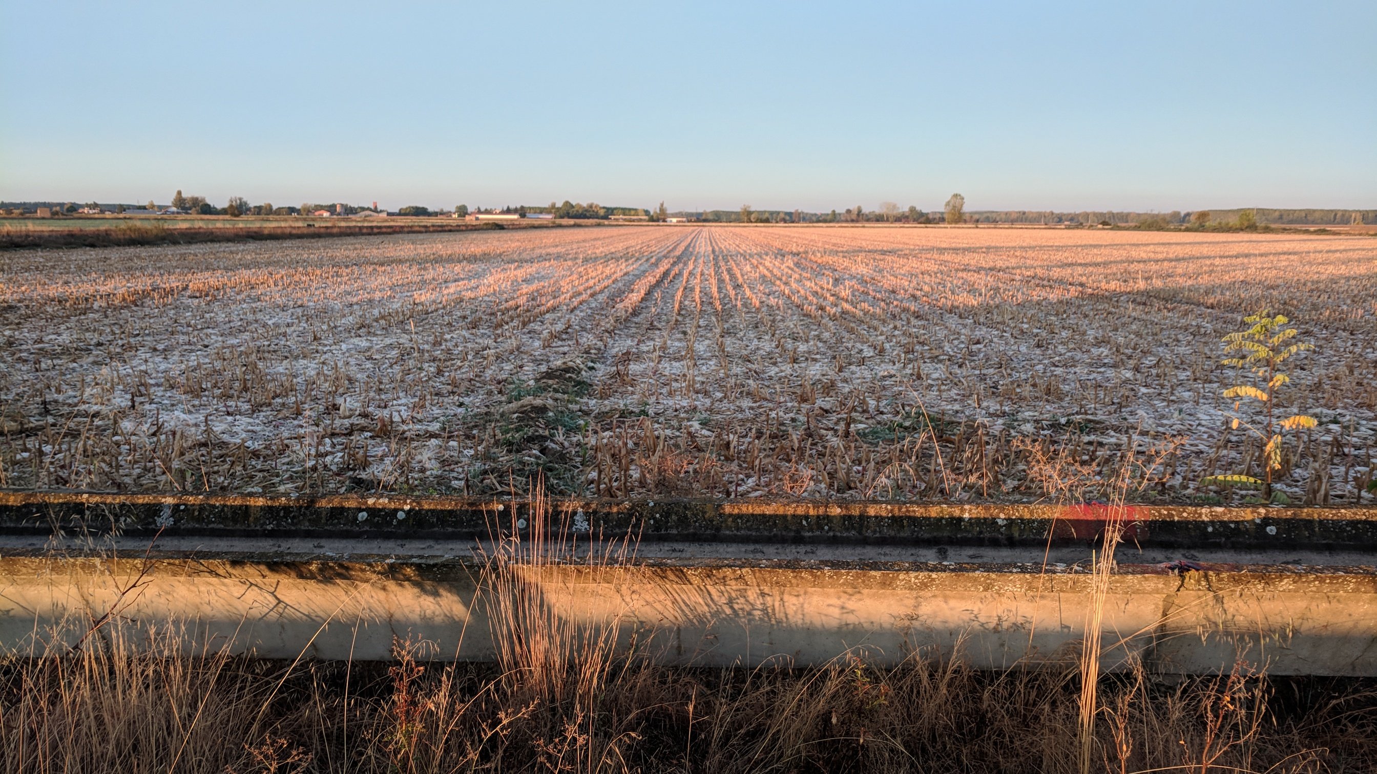 Corn in the field. A cool morning but this is not ice though it looks like it.