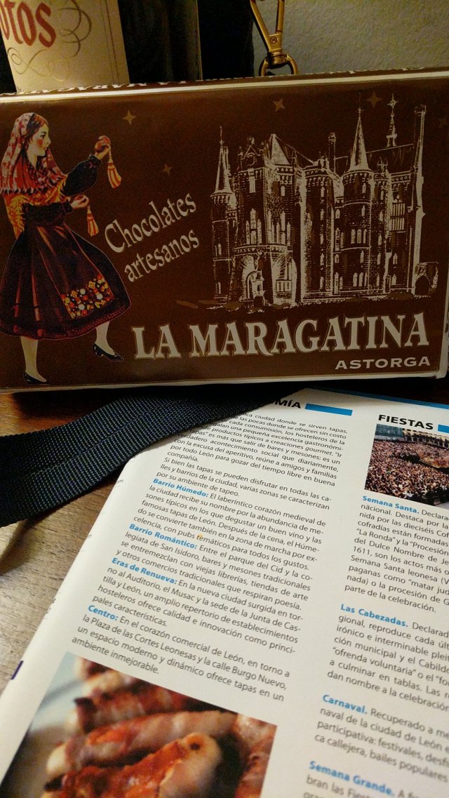 Astorga chocolate. Yes, we aquired some of the ubiquitous amounts available. Many types. Prices at a very small fraction of home but much higher taste quality to me. Nice packaging too.
