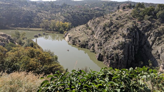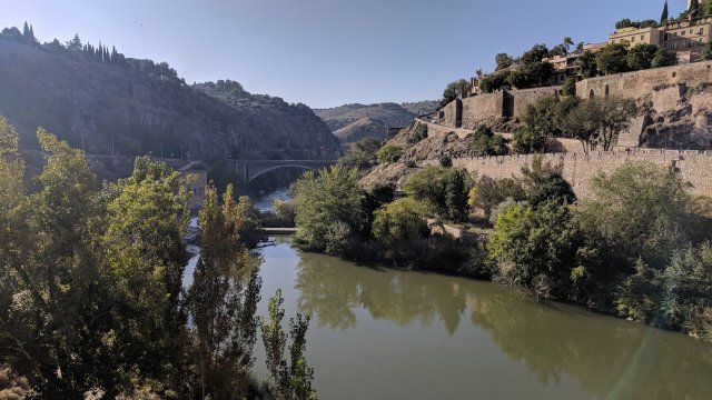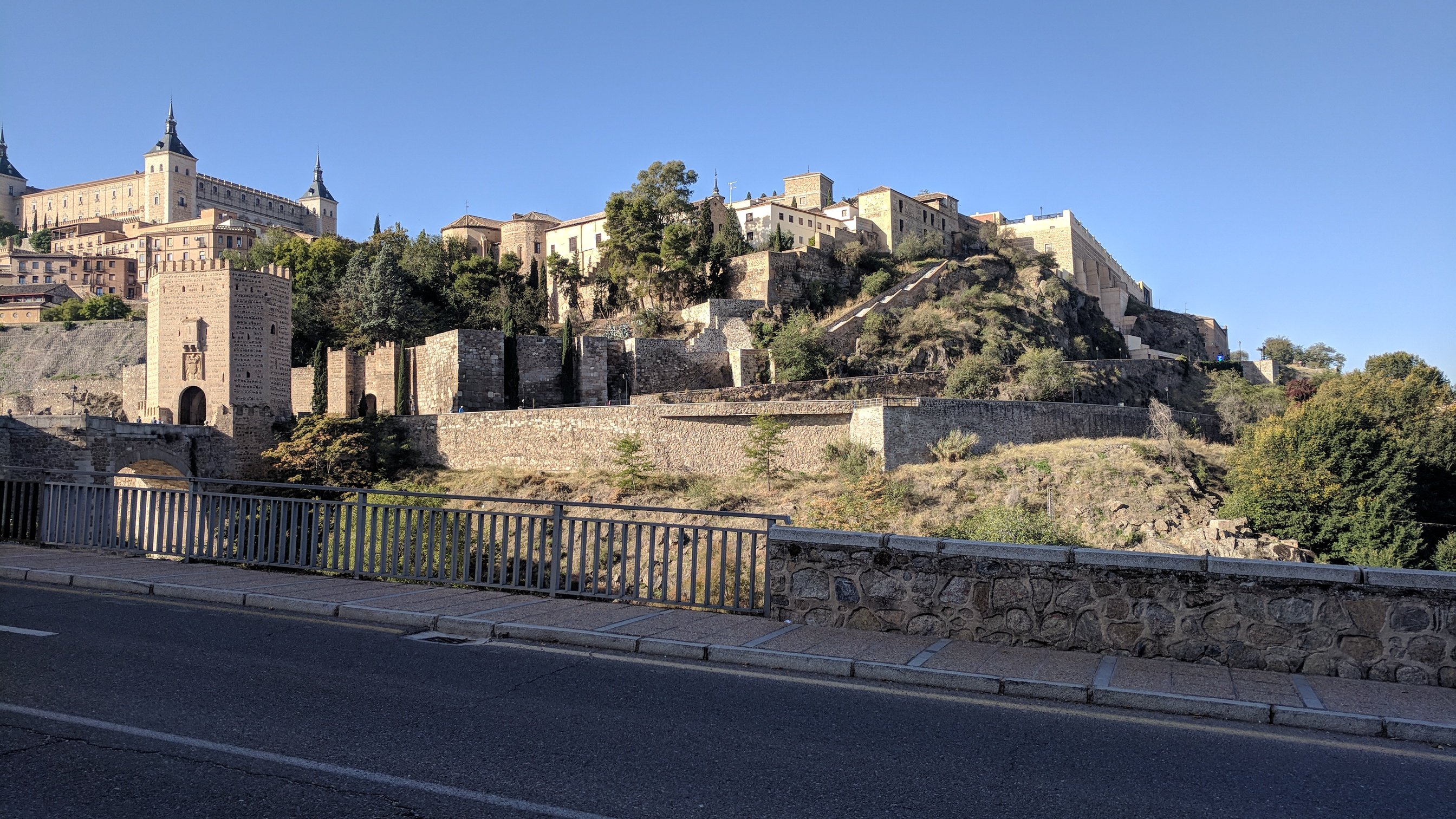 Toledo is built above a river. Classic hill town. Wonderful views from the entry gate we took.