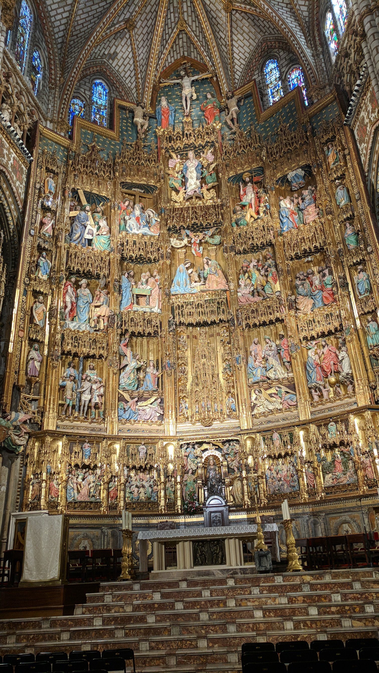 This is our final cathedral for this trip. Another large, Grand one. Maybe the largest retablo of them all. Certainly one of the most ornate chapel areas, of which there are many.