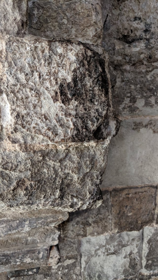 Notice the burn mark. Said to be dated to the great fire of London.