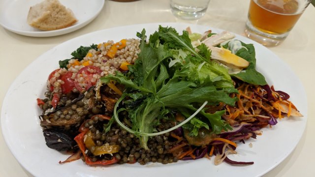 For salads. Daylesford is a farm to table restaurant. Has, of course a farm. QB had chicken and grilled veggies