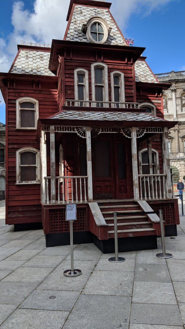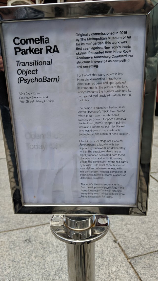 At the Royal academy they are doing an architecture exhibit. In the courtyard a commissioned piece, really a facade as explained. Modeled after Hopper and a scene in Psycho.