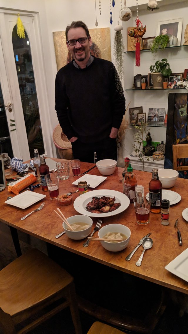Another fine dinner. Kieran, JD’s brother joined. Visiting from Cork. JD apparently slept through dinner. No one woke him up.